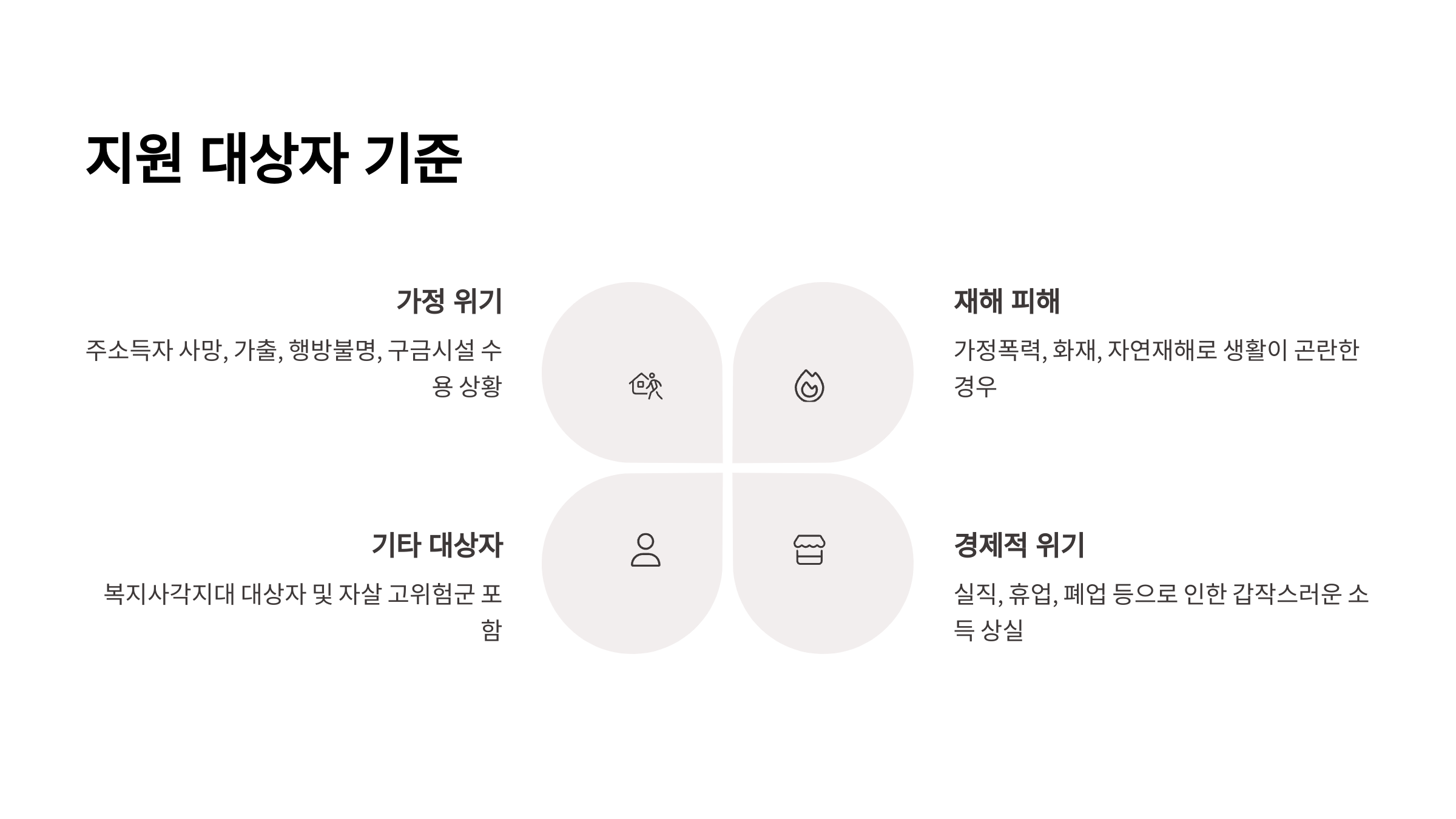 이 제도의 핵심은 ‘갑작스러운 위기’예요. 아래에 해당하는 상황이라면 거의 대부분 신청이 가능하다고 보면 돼요: