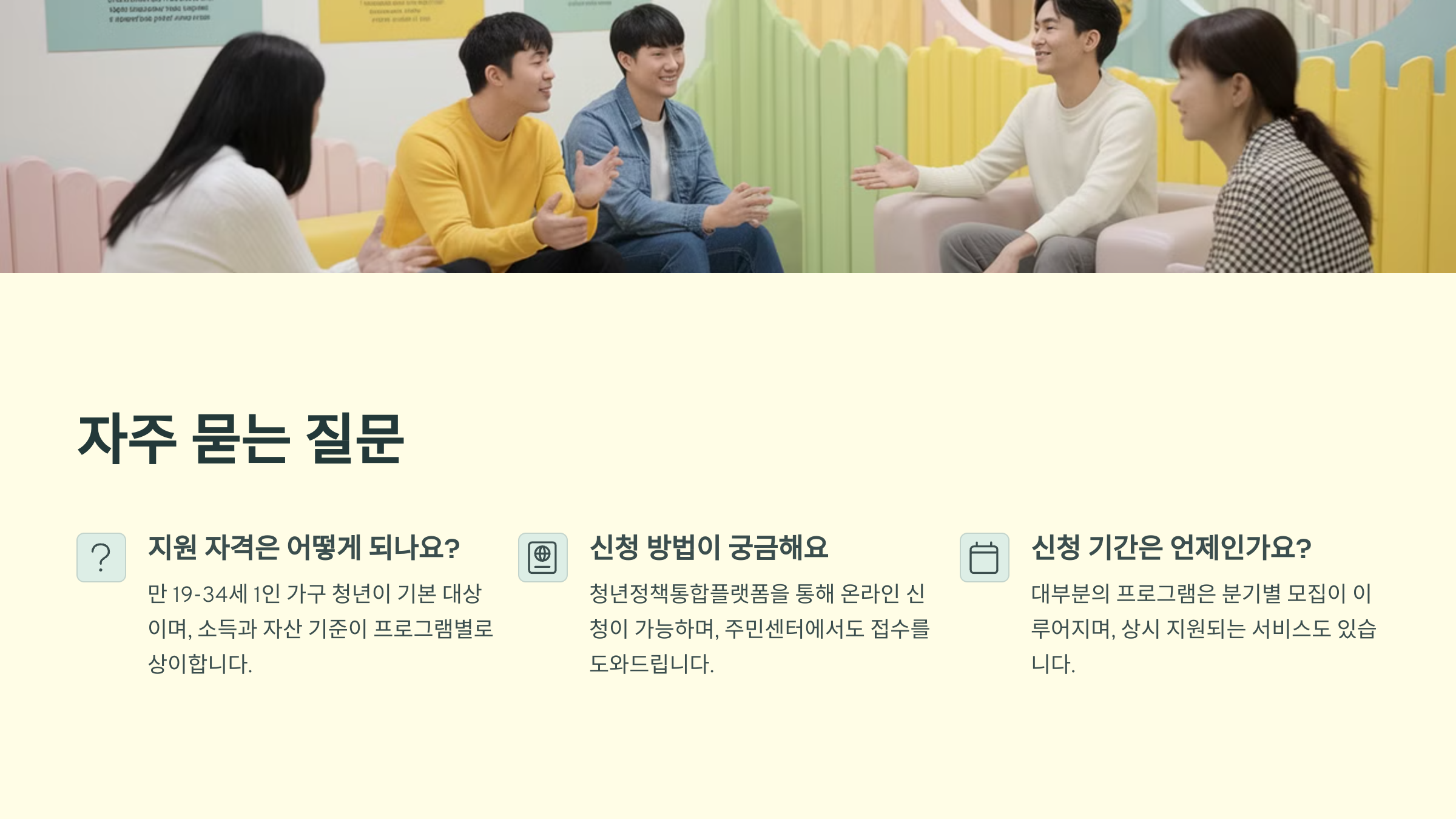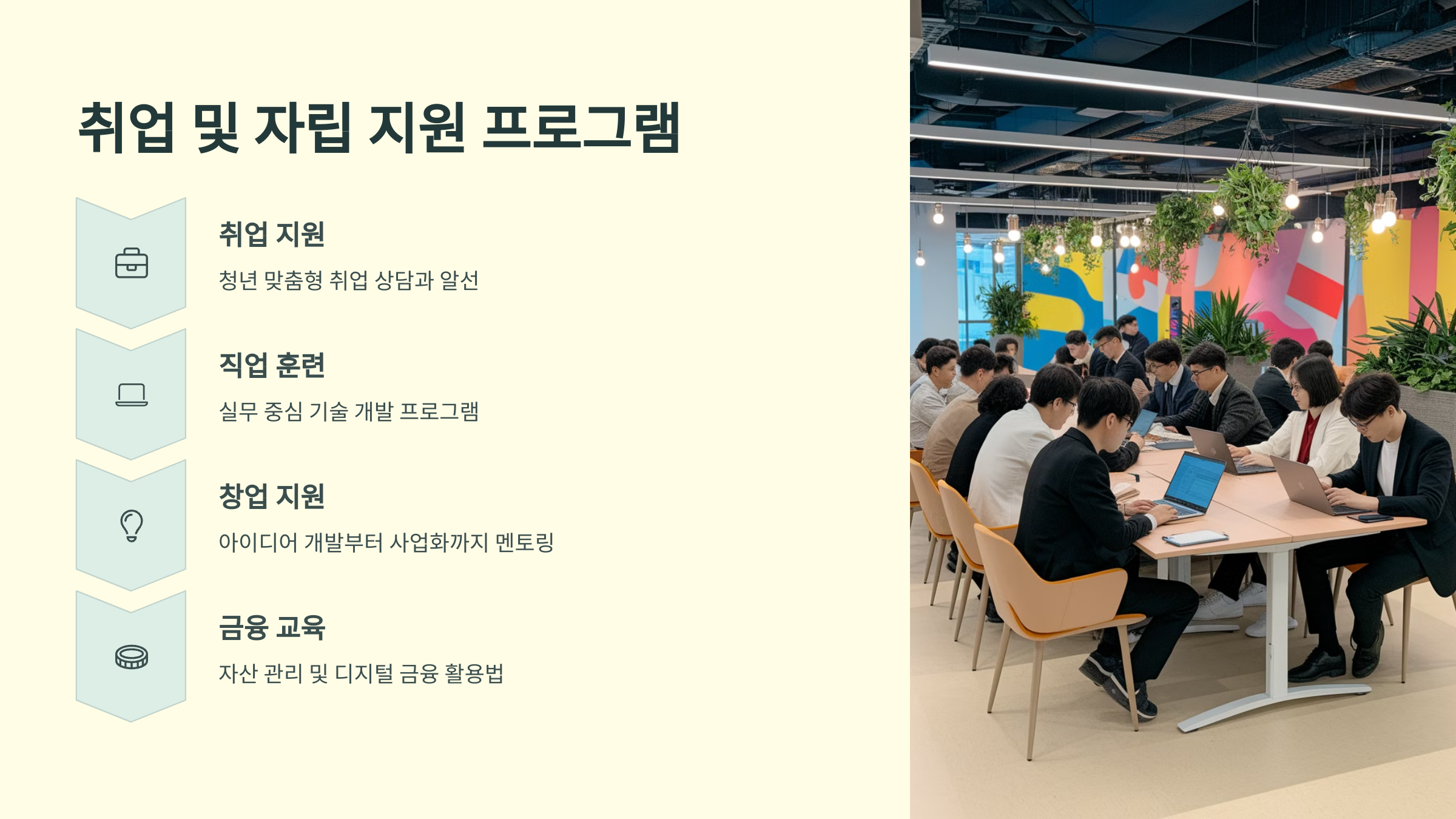 청년 1인 가구가 혼자서 알아보긴 쉽지 않지만, 이렇게 정리된 자료를 보면 어떤 지원을 받을 수 있는지 감이 확 와요! 다음은 취업과 자립을 위한 프로그램도 소개할게요 💪