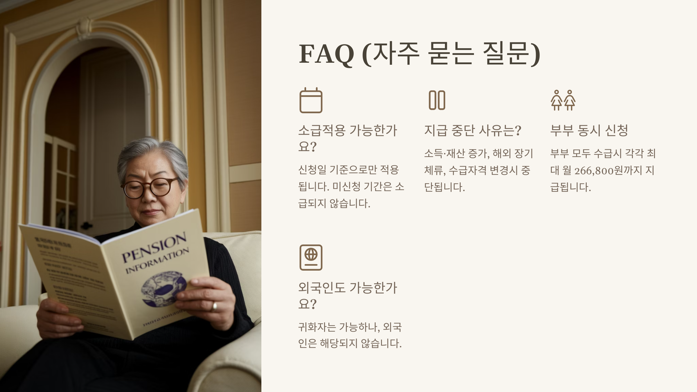 → 연금 수령 중에도 소득이나 재산이 크게 바뀌면 재조사가 있을 수 있어요
