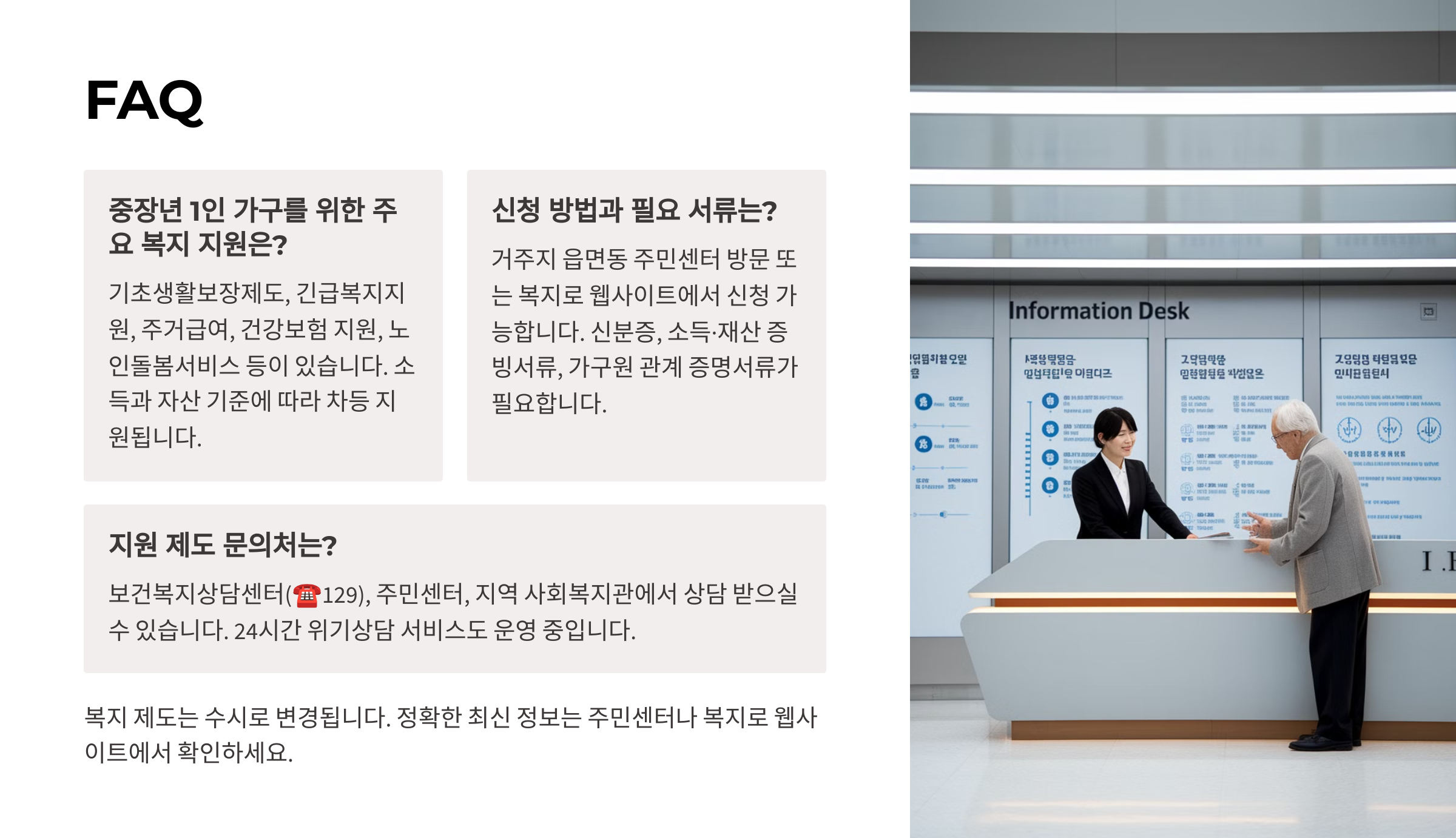 그래서 오늘은 복지의 '그림자'에 놓인 중장년 1인 가구를 조명해보려 해요. 어떤 정책이 있고, 어떤 제약이 있는지, 또 어떻게 개선되어야 하는지 구체적으로 살펴볼게요.