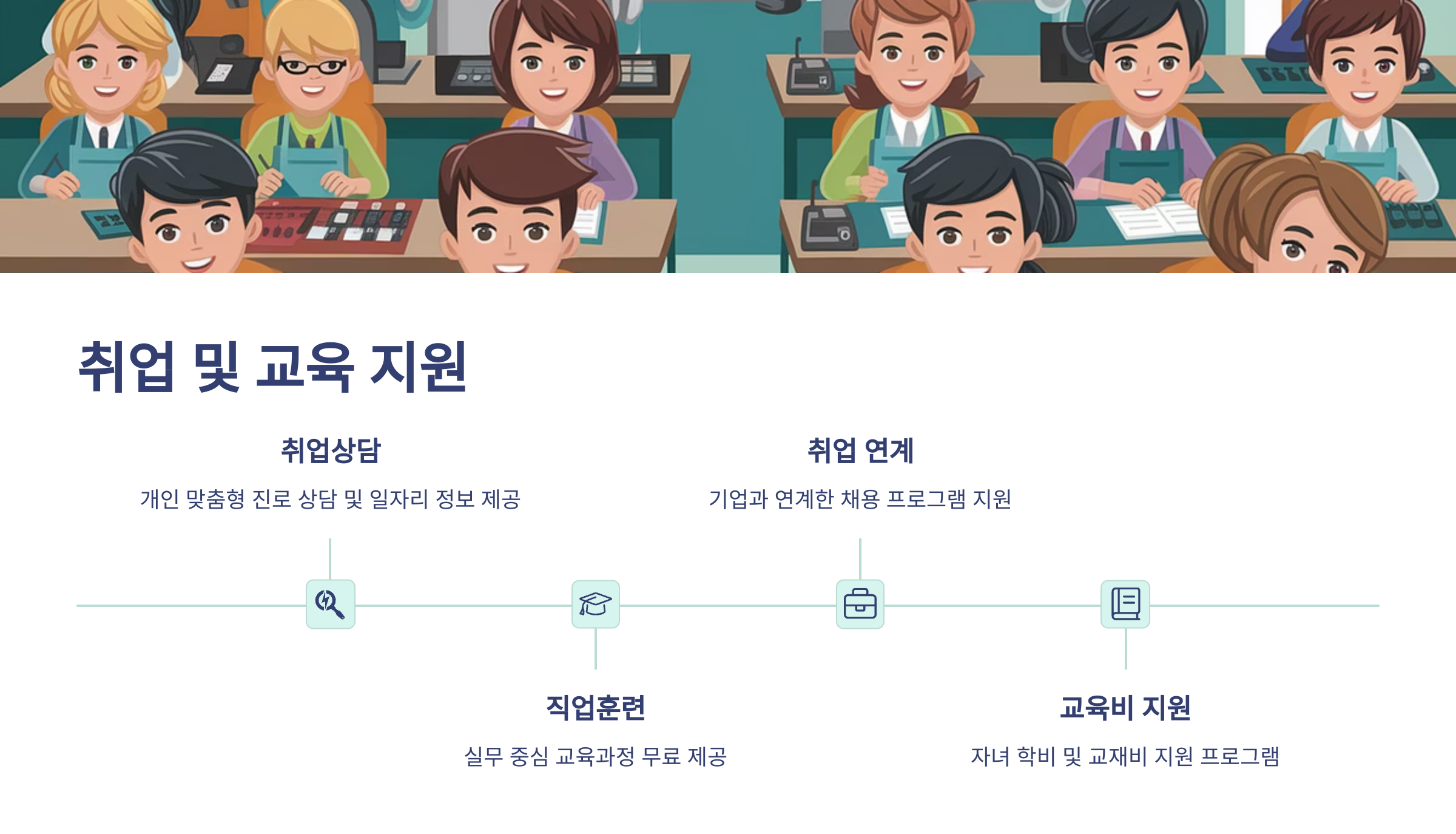 또한 취업 후에는 신용회복지원센터와 연계해 신용 개선을 위한 금융 상담과 재무교육도 가능해요. **국가가 구직부터 재무까지 연계 지원**해주는 거죠.