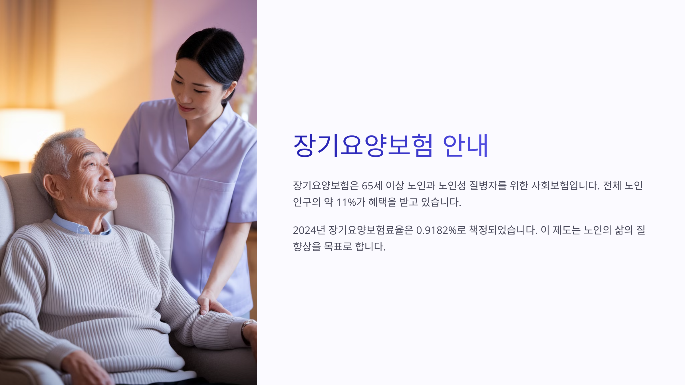 장기요양보험은 이름만 들어도 뭔가 복잡하고, ‘노인 요양시설이나 병원 들어갈 때 쓰는 보험’으로 오해하기 쉬워요. 하지만! 알고 보면 가정에서, 일상에서, 지금도 쓸 수 있는 다양한 혜택이 엄청 많답니다. 🧓🏡