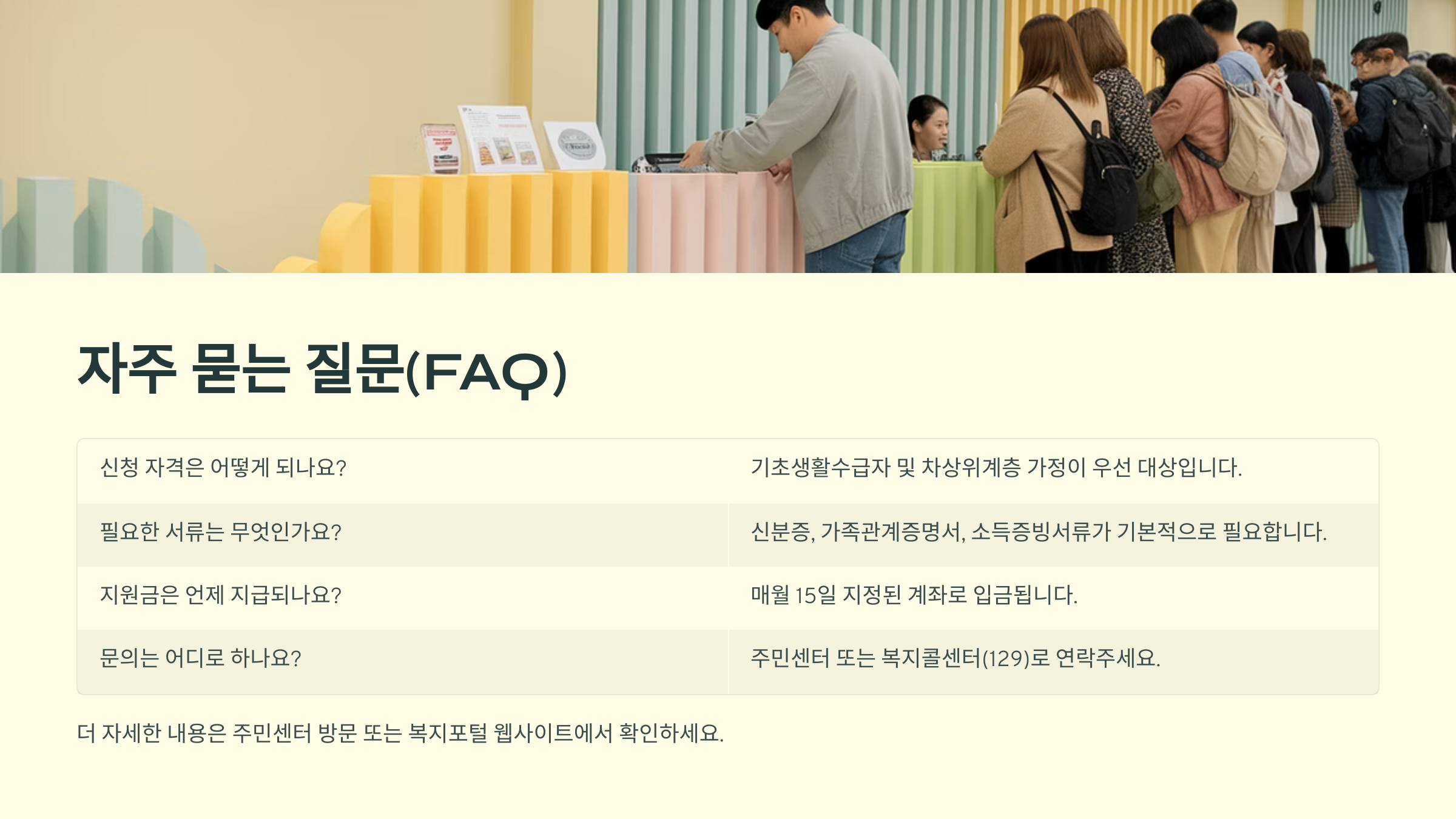 | 긴급복지지원 | 생계·의료·간병 단기지원 | 소득 급감 가구 | 6개월 이내 한시적 |