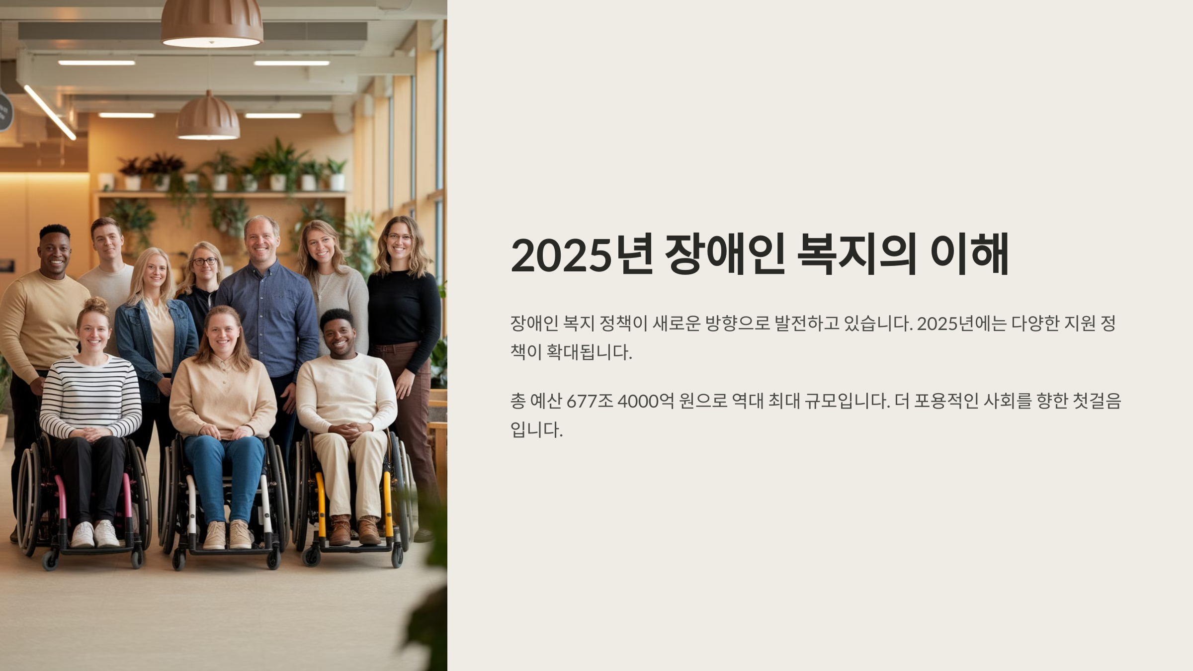 장애인 복지란, 신체적·정신적 제약으로 일상생활이나 사회생활에 제약이 있는 분들을 위해 국가가 보장하는 제도예요. 여기에는 금전적 지원뿐 아니라, 교육, 고용, 이동, 문화생활까지 포함돼요.